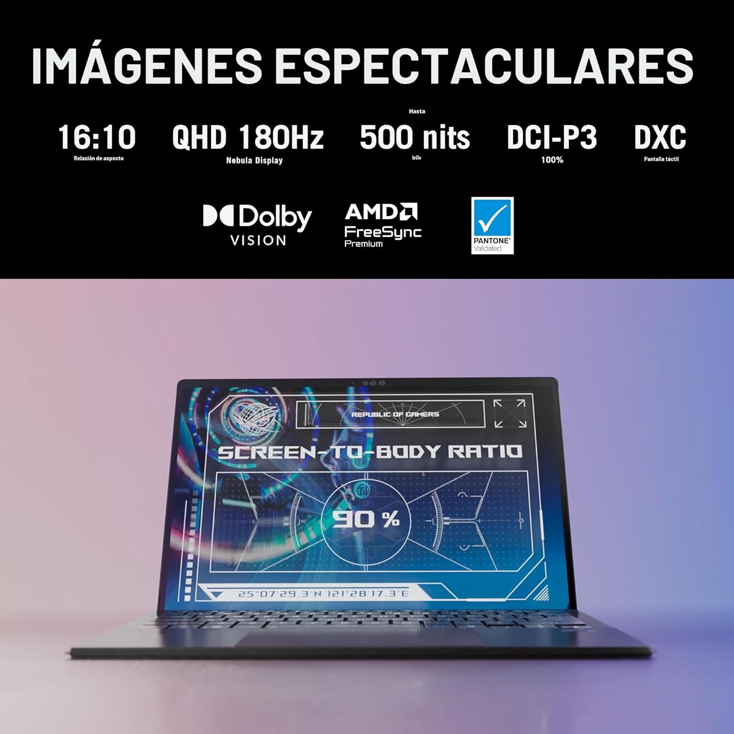 Asistente de IA que cambia el juego: experimenta aumentos de productividad y mejora la cortesía de eficiencia energética de ROG Intelligent Assistance con Copilot + PC con AMD Ryzen AI. Rendimiento impecable: la memoria LPDDR5X de 8000 MHz de cuatro canales equilibra dinámicamente la CPU y la GPU integradas. Con 128 GB de memoria de baja latencia, garantiza un juego fluido. Pantalla ROG NEBULA, BRILLANCE UNLEASHED: experimenta el brillo con la pantalla táctil validada PANTONE 16:10 WQXGA 180 Hz/3ms que cubre el espacio de color 100% DCI-P3. Rendimiento impecable: la memoria LPDDR5X de 8000 MHz de cuatro canales equilibra dinámicamente la CPU y la GPU integradas. Con 128 GB de memoria de baja latencia, garantiza un juego fluido.