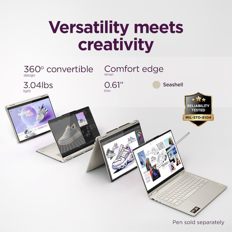 Memoria y almacenamiento LPDDR5x-7500 megahercios soldados de 16 GB y SSD M.2 2242 PCIe NVMe de 512 GB de almacenamiento Procesador AMD Ryzen AI 7 350 (8C / 16T, 2.0 / 5.0GHz, 8MB L2 / 16MB L3); Gráficos Gráficos AMD Radeon 840M integrados; Conectividad 1 x USB-A 3.2, 2 x USB-C 3.2, 1 x HDMI 2.1, conexión de pantalla a través del puerto USB; 1 conector combinado de auriculares/micrófono (0.138 in), 1 x lector de tarjetas microSD; Wi-Fi 7, 802.11be 2x2 + BT5.4; Sistema operativo Windows 11.