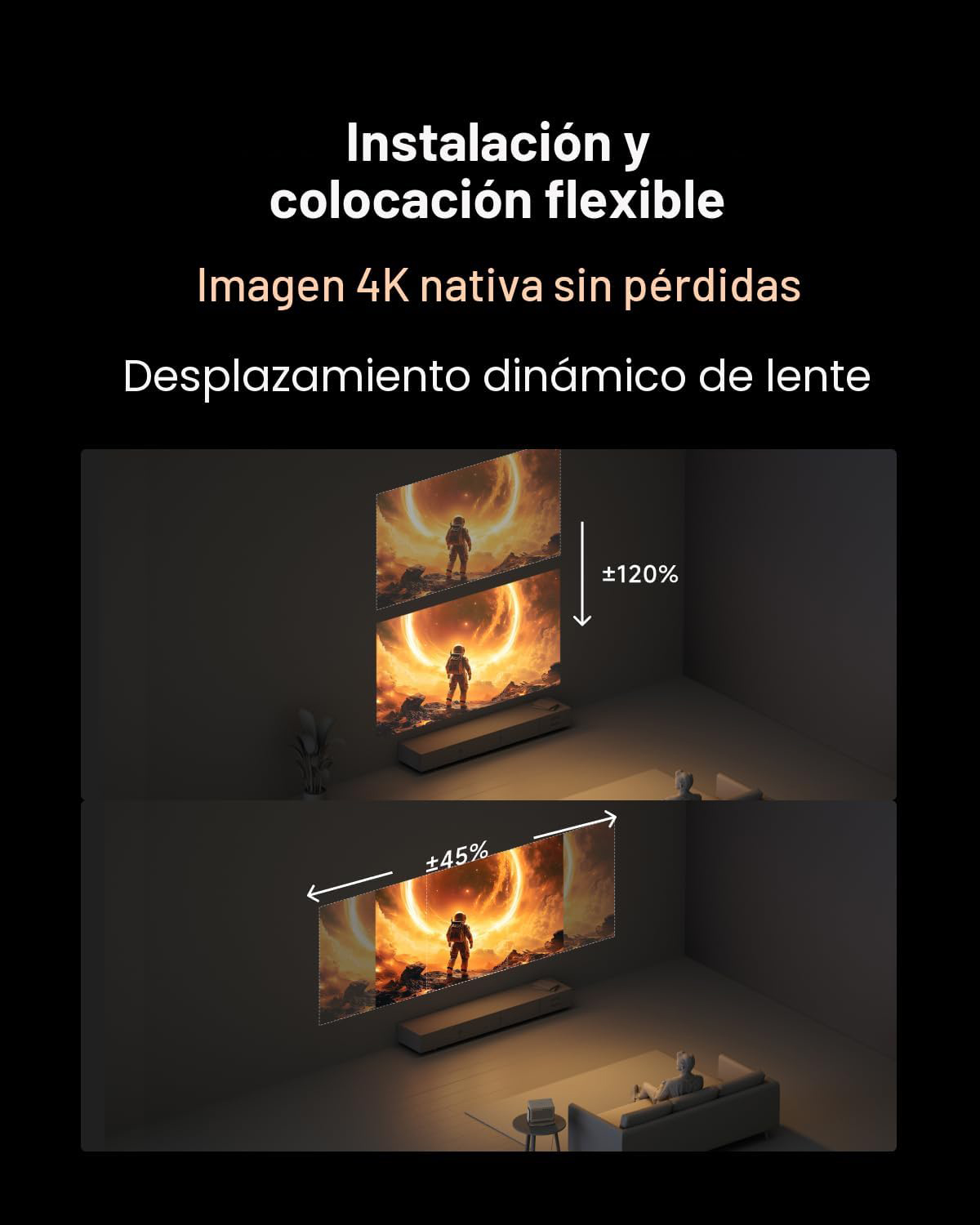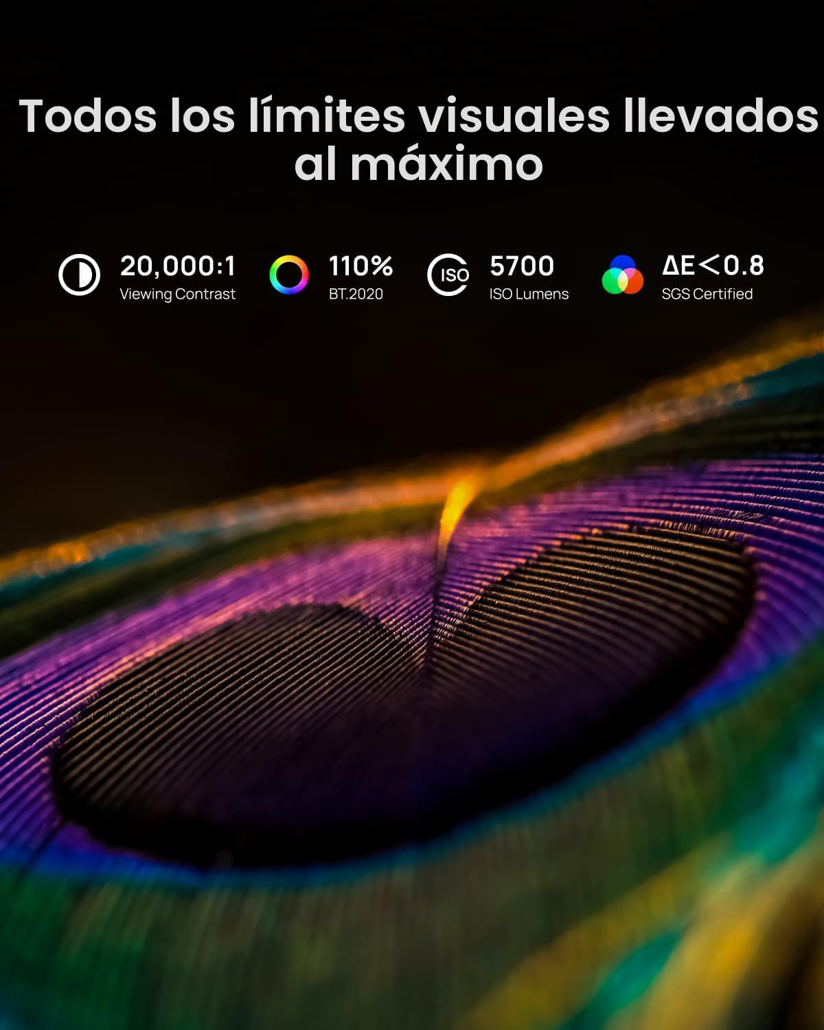 Óptica sin pérdida: el cambio flexible de la lente y el zoom óptico le brindan más libertad en la configuración, sin sacrificar la claridad. Disfruta de imágenes nítidas y sin distorsión en cualquier tamaño, desde cualquier ángulo. Listo para la luz del día, alimentación láser triple triple X-Master RGB ofrece 5700 lúmenes ISO de brillo máximo, contraste 20,000:1 y cobertura de color 110% BT.2020, lo que garantiza imágenes vívidas y precisas con una profundidad y claridad excepcionales.