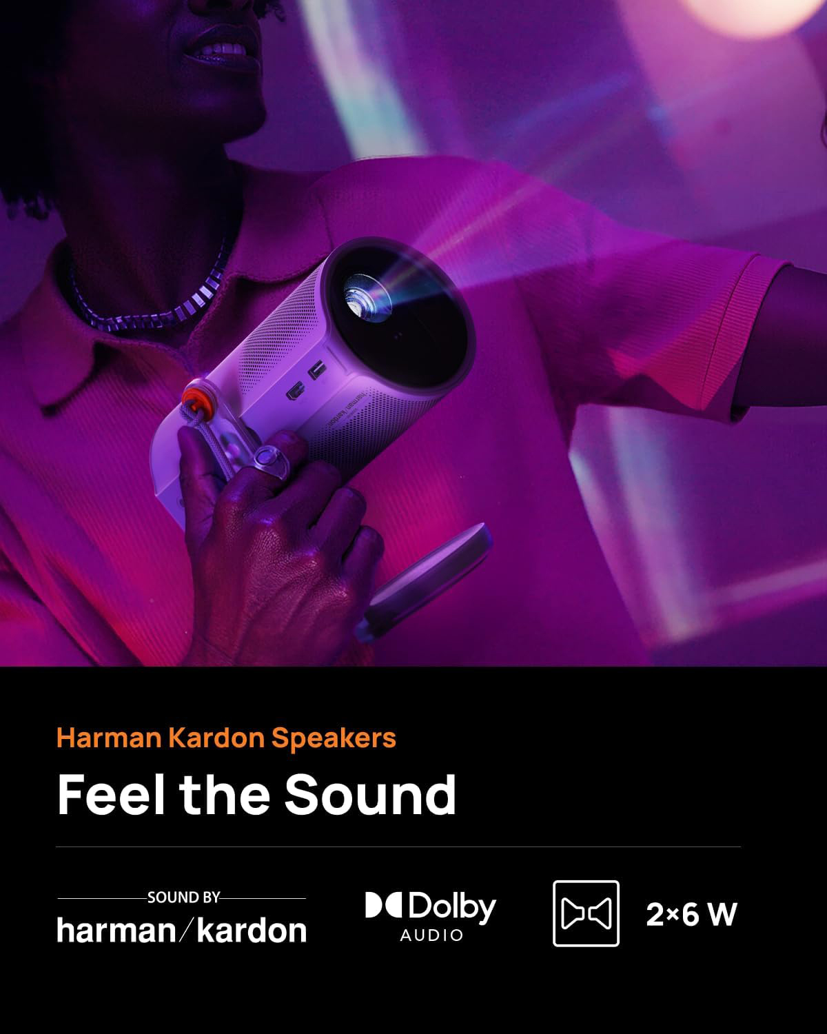 GTransmita los últimos éxitos y programas imprescindibles en MoGo 4 Laser. Accede al instante a más de 10.000 aplicaciones y más de 800 canales gratuitos, no necesita configuración, solo enciende y disfruta. Disfruta de un audio rico y cinematográfico de altavoces Harman Kardon de 12 W, mientras eliges entre cuatro filtros magnéticos para crear el estado de ánimo perfecto, personaliza tu audiovisual experiencia para cada escena.